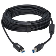 This USB fiber optic cable (M/M) securely connects the USB-A port on your desktop, laptop or notebook computer to a USB-B device, such as a printer, scanner or external drive, located up to 15 meters away. It supports USB 3.2 Gen 1 transfer rates up to 5 Gbps, which is 10 times faster than USB 2.0, for transmitting data only. Note: this USB cable is not backward compatible with USB 2.0 or USB 1.1 devices.