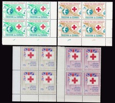 4d, 9d, 1/9 and 2/6 British Red Cross Society Blocks of four.