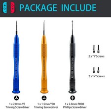 Triwing Screwdriver for Nintendo Switch Screwdriver Kit, Tri Tip Magnetic Screw Driver PH00 Y0 Y00 Nintendo Switch Repair Tool kit. Included: 1 x 2.0mm PH00,1 x 2.0mm Y0, 1 x 1.5mm Y00 Triwing Screwdriver, 2 x "+"Screws, 2 x "Y"Screws.