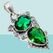 Tsavorite Quartz Gemstone 925 Sterling Silver Pendant 2.3" M646