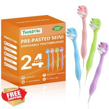 TuckPoki Travel Toothbrushes, Pre-Pasted, Individually Wrapped, 24 Pack