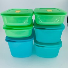 Tupperware Crystalwave Plus 12 Piece 6 Bowls Lids Green Blue Plastic Rectangle