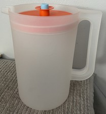 Tupperware Pitcher 1676-3 Clear W/ Orange Push Button Lid 20 Oz. VG