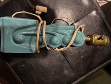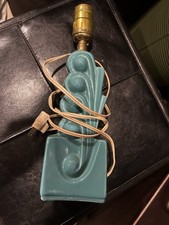 Turquoise Ceramic Table Lamp with Bell Shade, Mid-Century Abstract Design