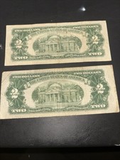 Two Dollar Bills, Red, Serial Number And Red Sale