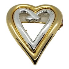 Two Toned Open Heart Brooch Pin.