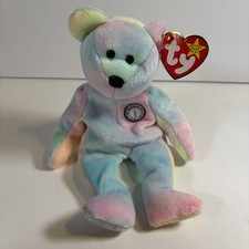 Ty Beanie Babies B.B. Bear Birthday Bear (1999) pastel tie-dye plush with original swing tag and hologram tush tag. Clean collectible example from the Beanie Babies Collection. • Brand: Ty • Model: B.B. Bear Birthday Bear • Year: 1999 • Pastel tie-dye fabric • Birthday candle chest badge • Swing tag attached • Hologram tush tag present Condition: Very Good pre-owned condition. Tags attached. Fabric clean with bright color and minimal handling wear. Ships with protective packaging to ensure safe delivery.