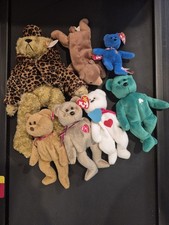 This product is a lot of Ty Beanie Babies Bears, featuring plush toy bears made by the popular brand Ty. One 13 inch bear, one Teenie Beanie bear from McDonalds, and five regular size. All have Ty tags except the white one.