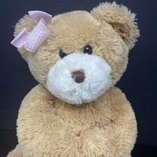 Ty Cradles Tan Teddy Bear Plush Pink Bow 17" Stuffed Animal 2005 TySilk