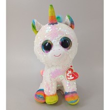 Ty Flippables Pixy Unicorn Plush Medium White Rainbow Reversible Sequin