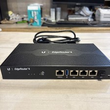 The Ubiquiti Edgerouter 4 is a wired fanless router that is designed for home networking and connectivity. It is manufactured by Ubiquiti and comes with the model number Edgerouter 4. The router does not have a manufacturer warranty but has been tested and is functioning properly. With its compact design and lack of a fan, it is a reliable option for users looking for a efficient and quiet networking solution.