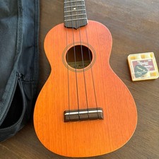 This is a ukulele set including the ukulele itself, a soft case, and a pick. The ukulele features a brown color tone, adding a warm and classic look. We are located in Japan. Includes: Soft case, pick.