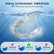 24W Powerful Ultrasonic Reainter Cleaner - Say goodbye to stubborn stains! Jinyeda retainer cleaner utilizes 45 kHz ultrasonic technology with an advanced piezoelectric ceramic chip to generate high-frequency vibrations.