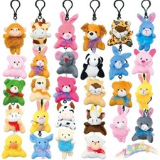 Vivid Assorted Colors. Including lion tiger bear cow dog elephant monkey duck rabbit leopard,ect. No duplicate. 【HANGING LOOP DESIGN】Each wildlife plush pendant is topped with a hanging loop design, which makes it better to hang these animal pendants on cards, bags, and wver you want to hang them.