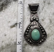 UNIQUE Handmade Navajo VTG Old Pawn Sterling Silver Turquoise hinged Pendant