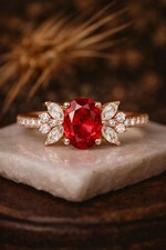 Unique Red Ruby Engagement Ring For Women-925 Silver Ruby Solitaire Ring Bridal
