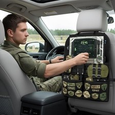 Universal Tactical Patch Black Seat Organizer&Tablet Pocket&Fixed Straps