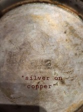 This unpolished vintage silver on copper metal pitcher is a unique and antique piece of collectible metalware. Handmade with a silver on copper construction, this pitcher exudes a rustic charm with its unpolished finish. Perfect for those who appreciate vintage and handmade items, this pitcher adds a touch of history and craftsmanship to any collection.