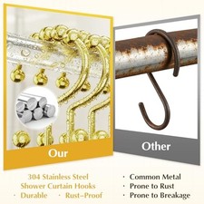 Upgraded 304 Stainless Steel Shower Curtain Hooks, 12-Pack Rust-Proof Heavy