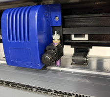 US Cutter Titan 3 – 28” Vinyl Cutter Plotter, With Stand + Vinyl Catch Basket Roller Bars. The Titan 3 series is the servo-driven version, providing quieter operation and more precise cutting compared to standard stepper-motor cutters.