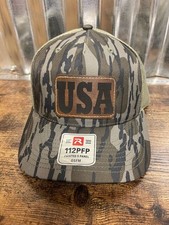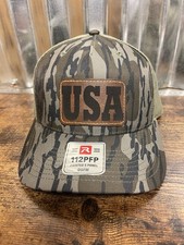 USA Mossy Oak BottomLand Camo Trucker Hat Custom Made Leather Patch