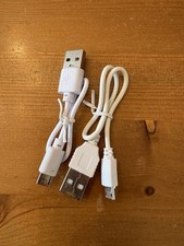 The product is a lot of 2 white USB cables that are compatible with a universal range of brands. These cables feature a 1:1 connection split/duplication, with a USB Type Micro-B Male connector on one end and a standard USB connector on the other. The output voltage is 5V, making them suitable for various computer and tablet devices. This product is ideal for connecting different devices with USB ports efficiently and conveniently.