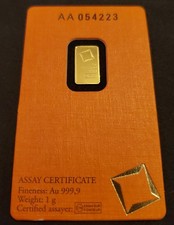 Valcambi 1 Gram Gold Bar .9999 - Unsealed with Assay Card Signature will be required on delivery.