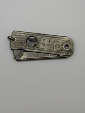 The Valet Auto Strop Razor Utility Knife is a vintage collectible folding knife from the 1920s-1930s produced by the Cudahy Packing Co in the USA. This unique knife features a razor blade and is designed for utility purposes. With its historical significance and craftsmanship, this vintage item is a valuable addition to any collector's inventory. It offers a glimpse into the past and is sure to appeal to enthusiasts of vintage folding knives.