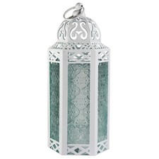 VELA LANTERNS White Moroccan Candle Lantern Decorative Medium, White/Clear