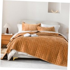 Velvet Quilt Queen, Soft Luxury Plaid Bedding Set, Lightweight Bedspread