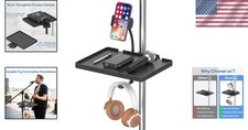 Compatible with most microphone stands, music stands, ring light stands, and phone tripods. (Adjust the rubber gasket inside the clamp to fit your stand pole.). Microphone Stand Tray. Versatile Design: Equipped with an adjustable phone holder compatible with iPhone 17, 16, 15, 14, 13, 12 Pro/Pro Max/Mini, Samsung Galaxy, and most smartphones.