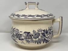 Victorian Blue And White Transferware Chamber Pot & Lid No Chips Or Cracks