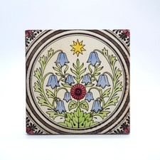 This is a very beautiful transfer-printed and tinted tile with a beautiful floral bluebells design, made by Micklethwait around 1886. I do my best to disclose any flaws I find in an item.
