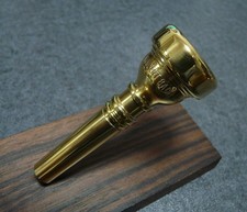 This is a rare and highly collectible Bach 11DFL trumpet mouthpiece, stamped with the 1970 marking. It features a distinctive deep, angular engraving that sets it apart from typical models. Crafted with 99% gold plating, this mouthpiece is in excellent condition, showing minimal signs of use.