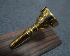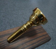 This is a rare Bach 3 FL trumpet mouthpiece, stamped between 1965 and 1969. It features a short shank design, which is uncommon and sought after by collectors and players alike. The mouthpiece is 99% gold plated, exhibiting only minor buffing scratches on the outside of the cup, maintaining excellent overall condition.