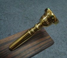 This is a New York Bach 7C mouthpiece, renowned for its excellent playability and moderate resistance, making it ideal for a comfortable embouchure. It features a 99% gold-plated finish, which is in very good condition with no significant scratches.