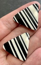 Vintage 1.1” Black & White Stripped Lucite Drop Retro Earrings