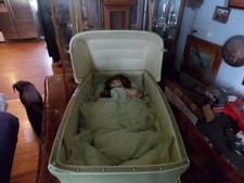Vintage 1930s art deco Baby Doll Carriage Stroller Buggy Vinyl, Wood, Steel