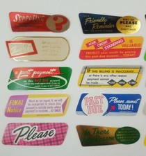 Vintage 1950's Past Due Bill Reminders - 25 Lick & Stick Style Labels - NOS!