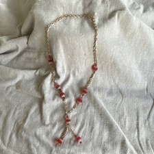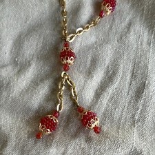 Vintage 1960s Gold Tone Red Beaded Cable Chain Necklace 18 Inch
