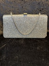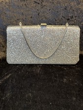 Vintage 1960s Metal Frame Silver Glitter Clutch With Chain. Condition is Pre-owned. Shipped with USPS Ground Advantage.