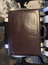 Vintage 1970s Brown Leather Hard Suitcase with Locking & Extra Compartments