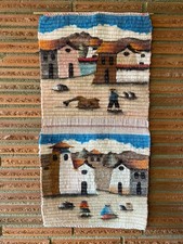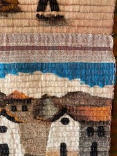 Vintage 1970s Handmade Woven Wool Wall Hanging MCM Boho Tapestry Textile Art