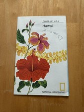 Front cover/folded side shows colorful Hawaiian floral artwork with hibiscus and other tropical flowers plus small outline map of the Hawaiian Islands and the National Geographic yellow rectangle logo.