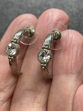 Vintage 3/4” Curled Crystal Rhinestone Silver Tone Earrings