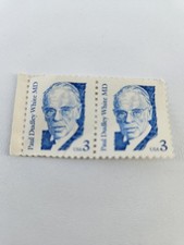 The product is a vintage 3 cent postage stamp featuring Paul Dudley White MD. Issued between 1981-1990 in the United States, this stamp has original gum and is in a blue and white color scheme. It is ungraded and uncertified, making it a unique and collectible piece for stamp enthusiasts and collectors interested in United States postal history from the 20th century.