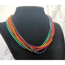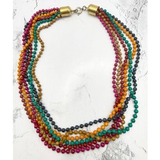 Vintage 5 Strand Beaded Necklace Multicolor Glass Look 15" Statement