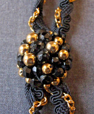VINTAGE 80'S GOLDEN BLACK BEADED MEDALLION CHAIN & PASSEMENTERIE STRAP NECKLACE