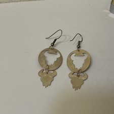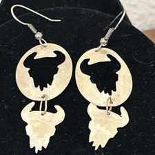 Vintage .925 Sterling Silver BuffaloSkull Dangle Earrings Southwestern Bison X25