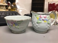 Vintage 9y CROWN DEVON CREAMER & SUGAR SET ENGLAND Blue 2" T